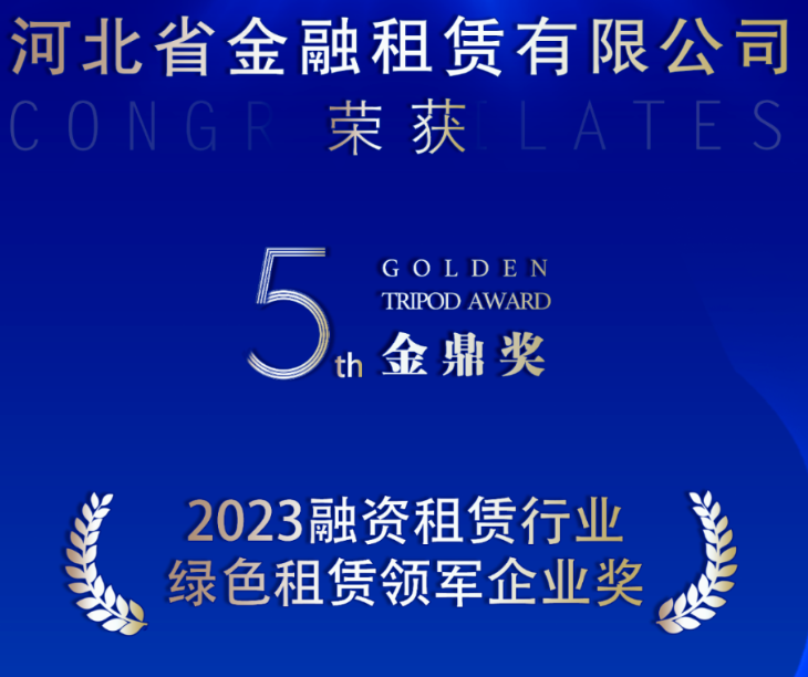 日前,2023中國(guó)融資租賃總經(jīng)理論壇暨“金鼎獎(jiǎng)”頒獎(jiǎng)盛典在京舉行,300多位金融租賃、融資租賃機(jī)構(gòu)齊聚一堂見證獎(jiǎng)項(xiàng)揭曉。河北省金融租賃有限公司(以下簡(jiǎn)稱“河北金租”)榮獲2023年度融資租賃行業(yè)綠色租賃領(lǐng)軍企業(yè)獎(jiǎng)項(xiàng)。去年以來(lái),河北金…